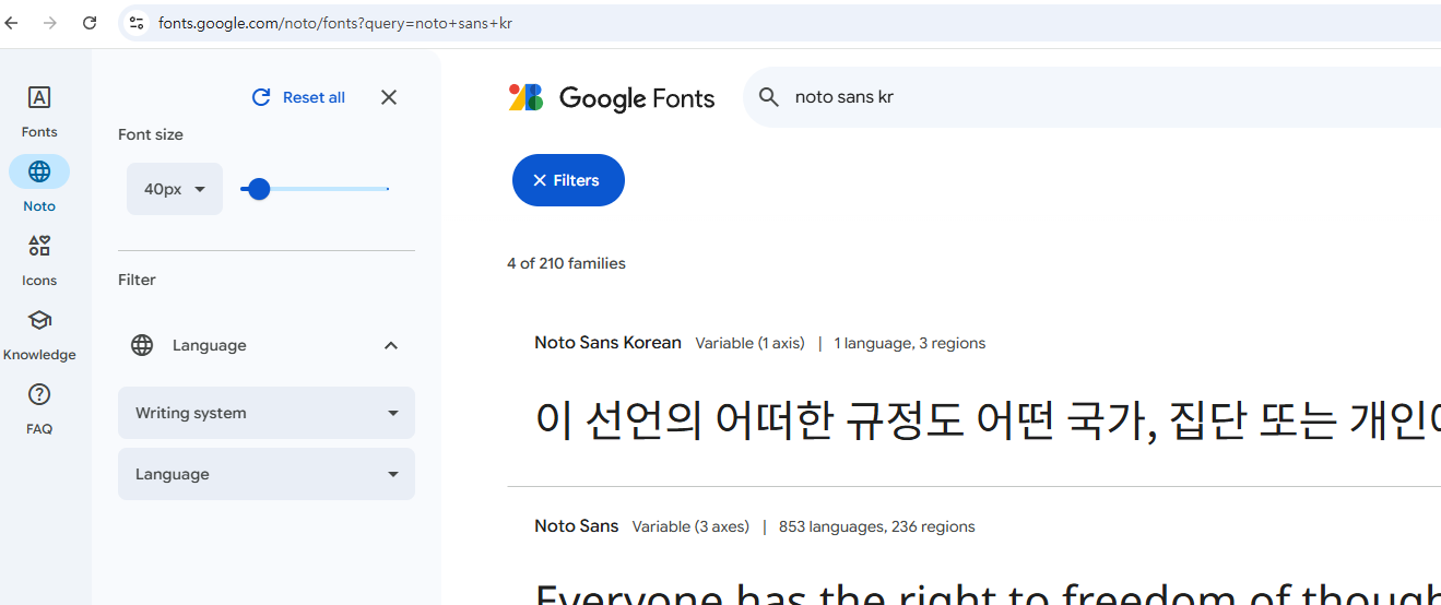 – Noto, Nanum, Roboto 등 다양한 언어와 스타일을 지원합니다.